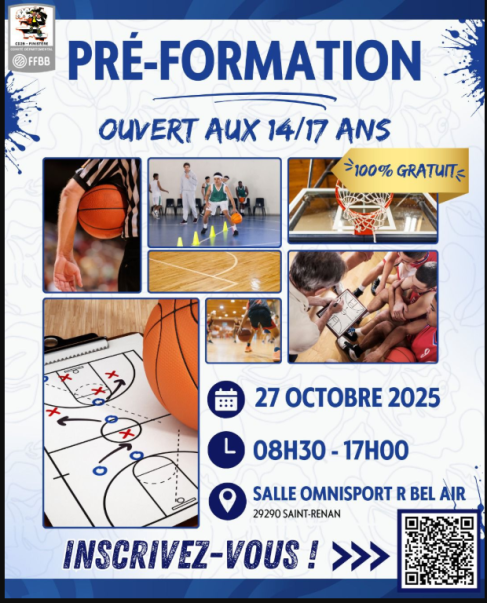 ➡ Lien pour les inscriptions : https://basket29.com/pre-formation-14-17-ans/apercu/82/pre-formation-14-17-ans